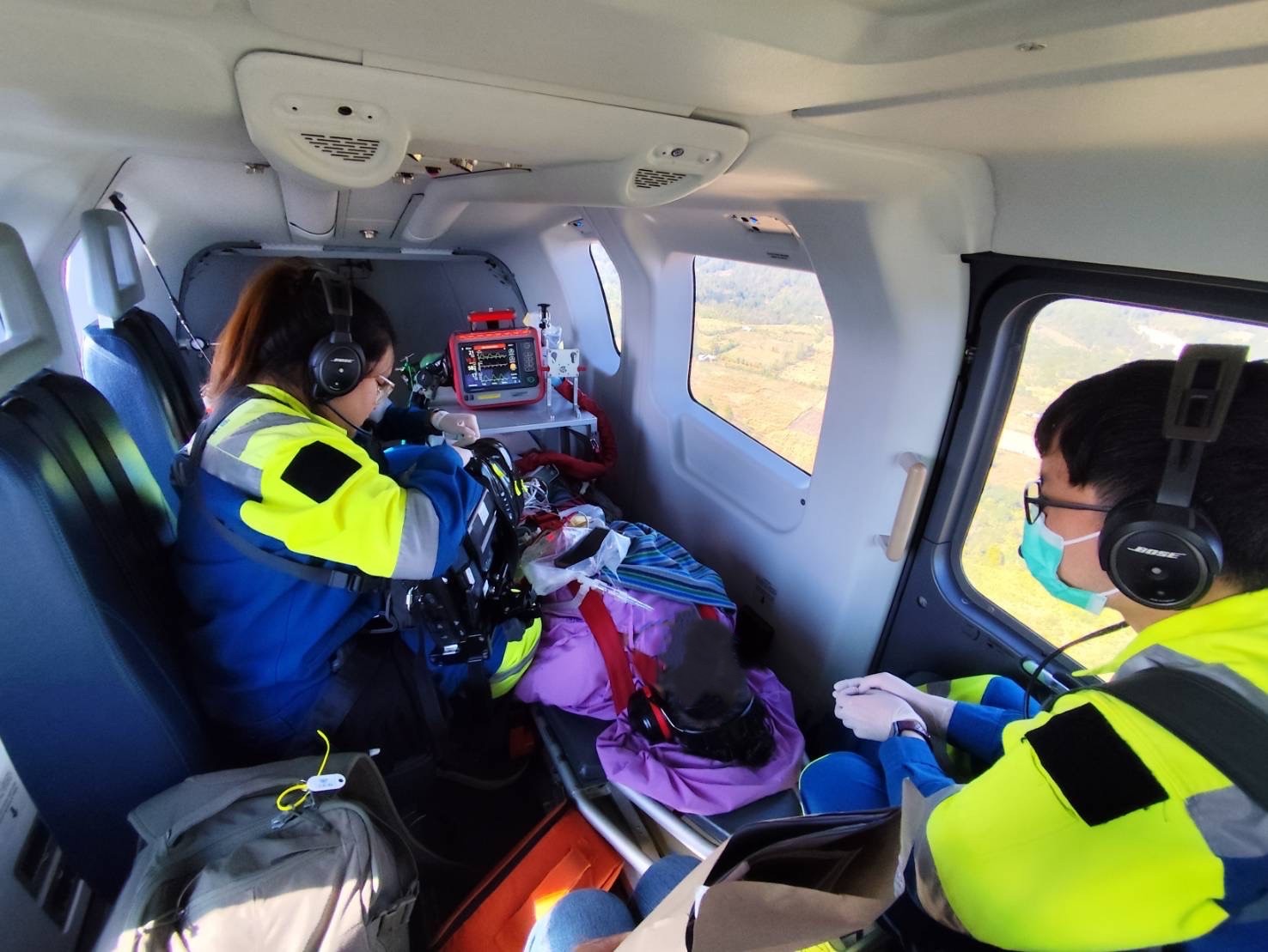 การลำเลียงทางอากาศใช้เวลาบินประมาณ 30 นาที ซึ่งช่วยลดระยะเวลาได้อย่างมีประสิทธิภาพ เมื่อเทียบกับการลำเลียงทางรถยนต์ที่ต้องใช้เวลาประมาณ 3–4 ชั่วโมง